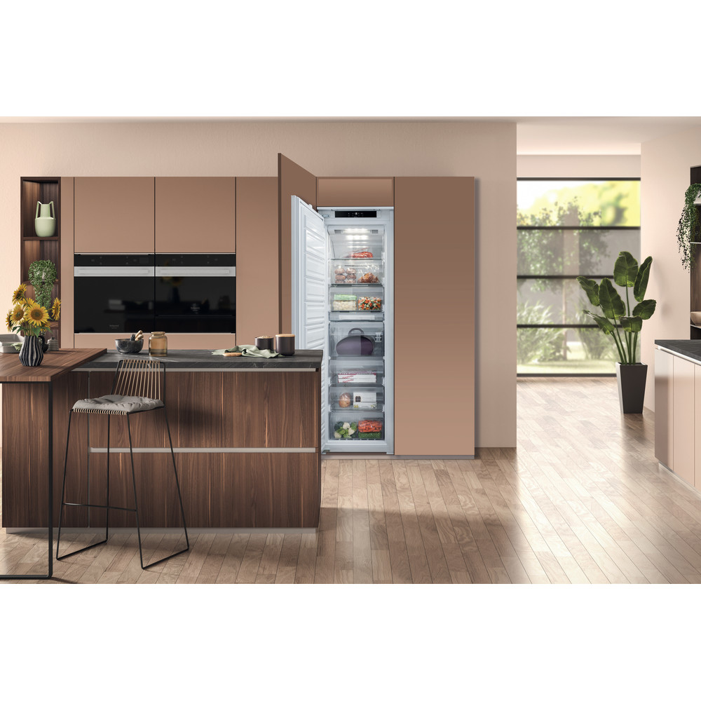Este congelador vertical de encastre Hotpoint tem: cor branca. Tecnologia No Frost, que reduz a humidade dentro do congelador, prevenindo a acumulação de gelo.