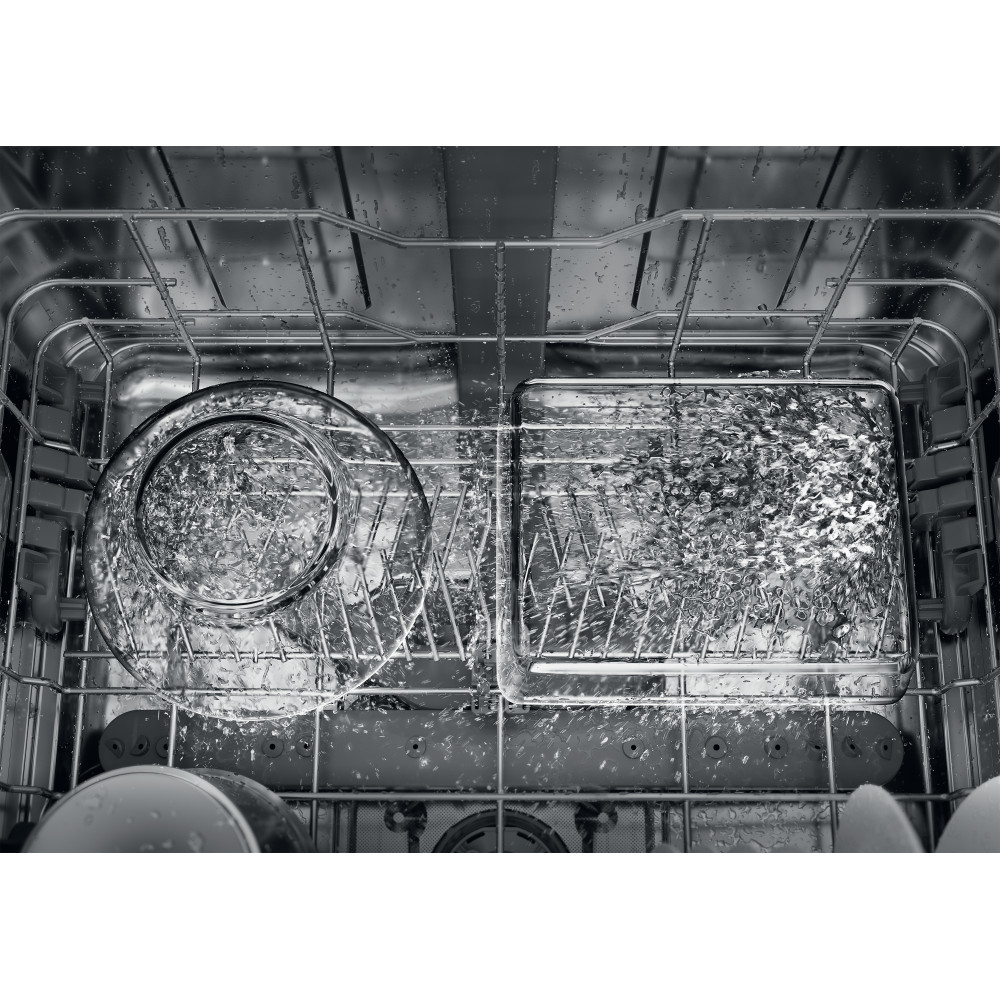 A tecnologia Zone Wash 3D permite até 80% * de maior poder de limpeza para que os pratos saiam sempre brilhantes. *Aumento da percentagem média da potência de água versus sem a opção Zone Wash 3D ativada.