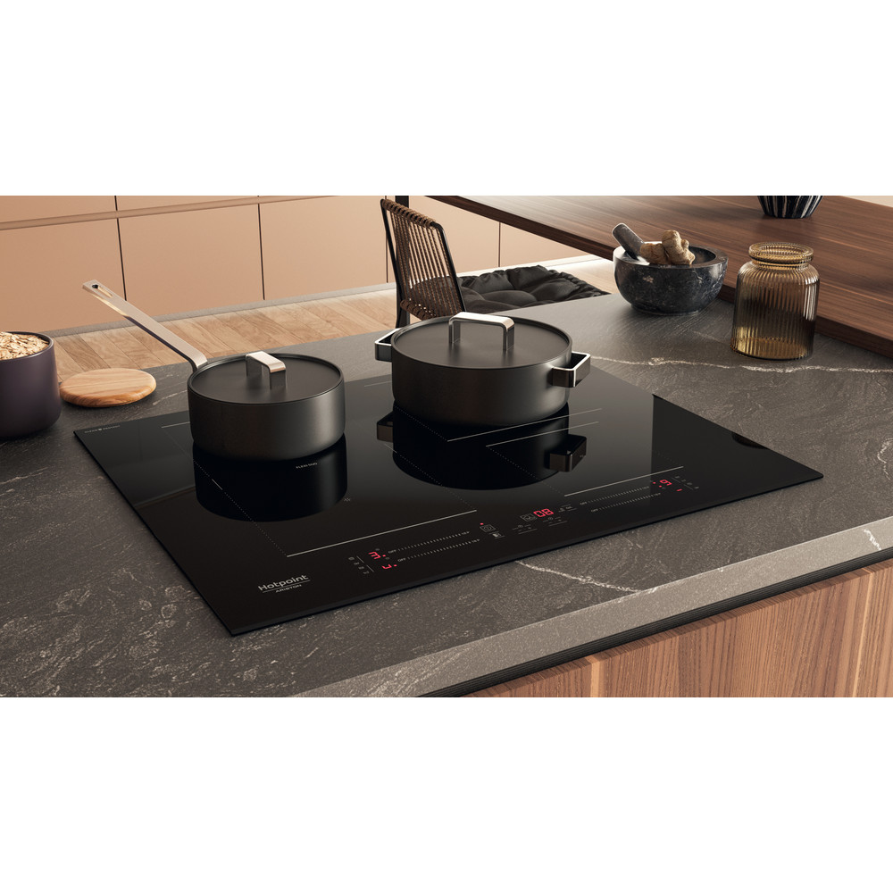 Esta placa de indução Hotpoint tem: alimentação elétrica 4 zonas de indução