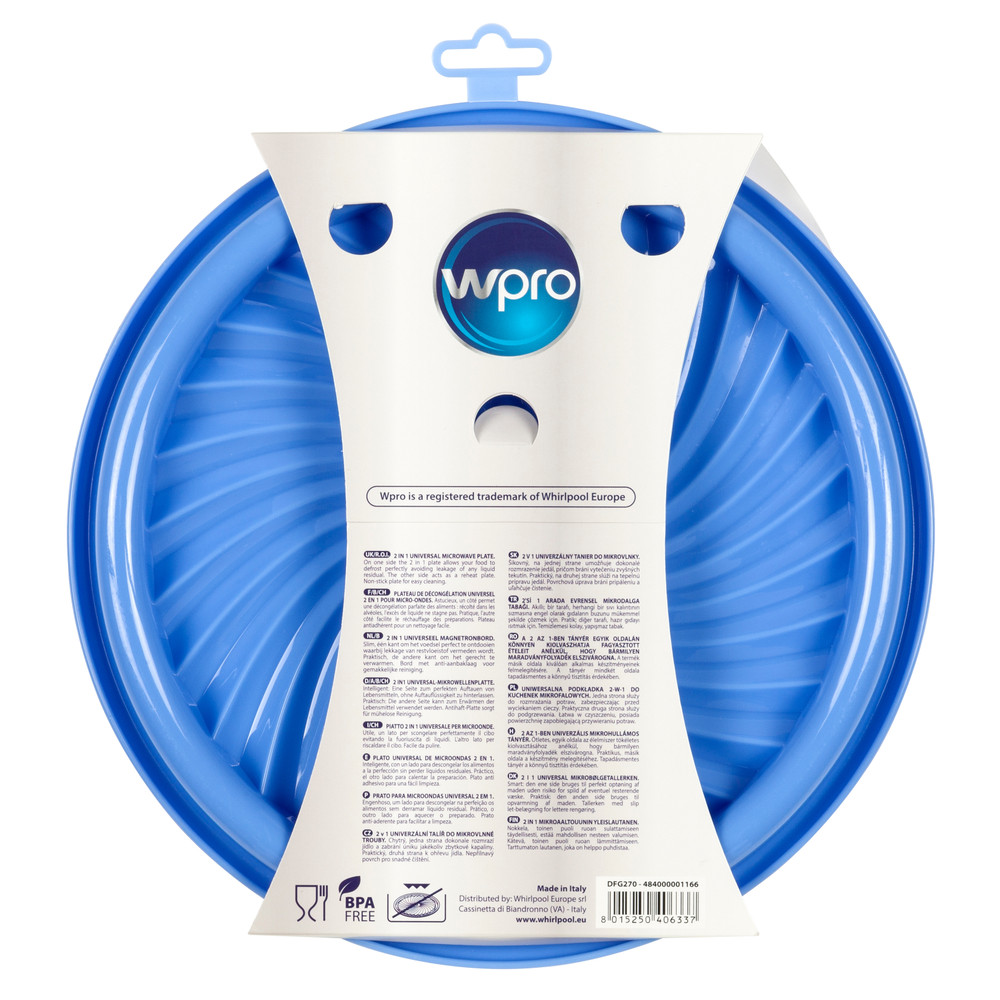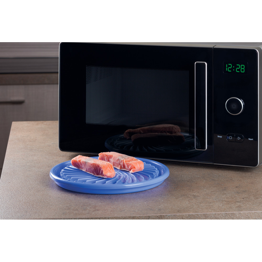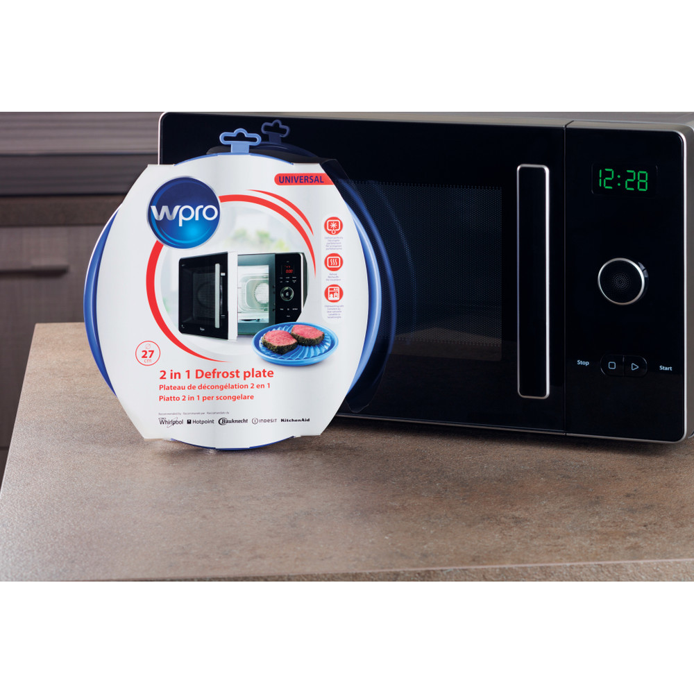 Permite, de um lado, descongelar perfeitamente alimentos e evitar quaisquer fugas de líquidos e, do outro, aquecer quaisquer alimentos. Fácil de lavar devido ao seu revestimento antiaderente. Não utilizar com a função Grill. Sem BPA. Dimensões: Ø27 cm.